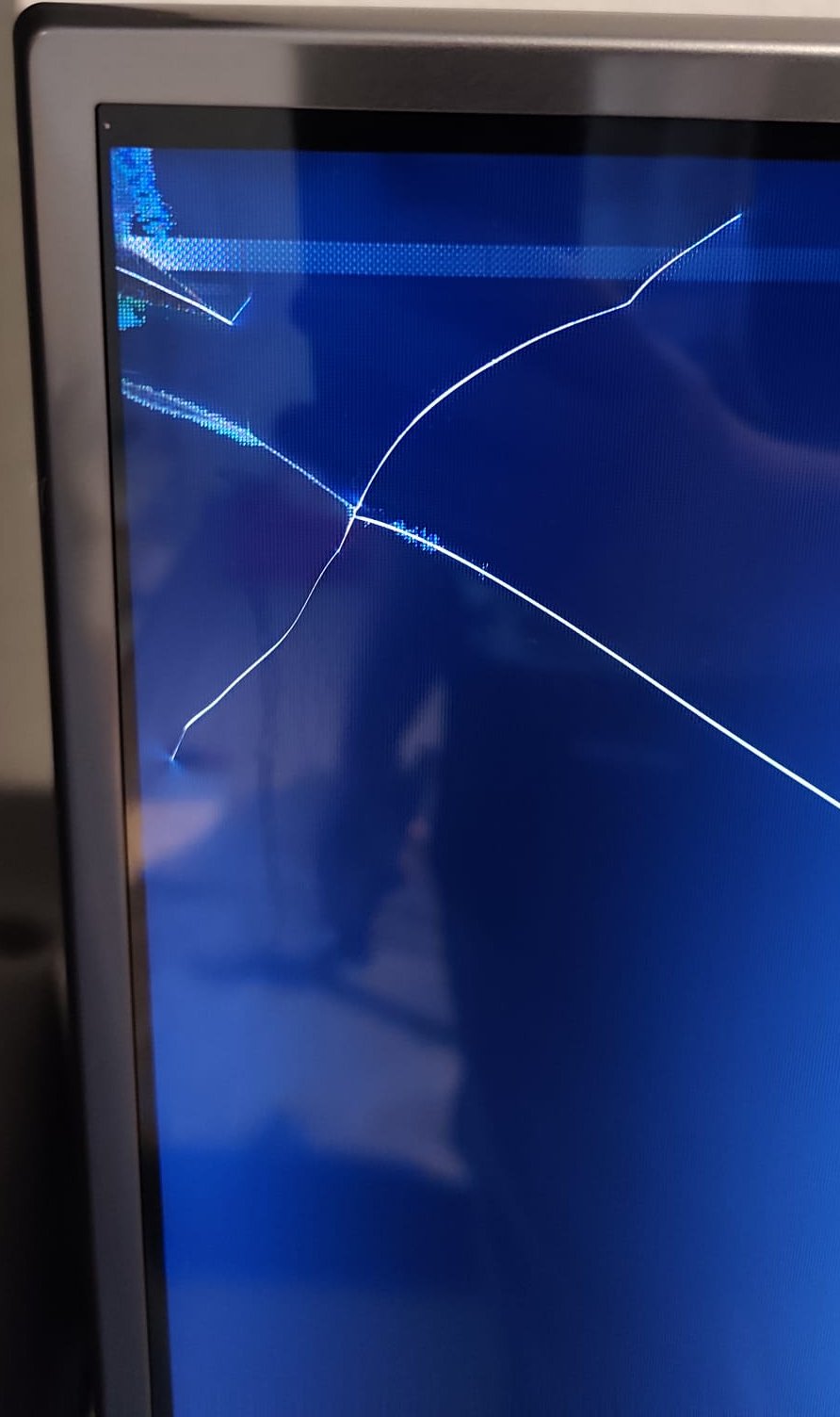 A háttérvilágítás cserét követően a letesztelt, de nem összeszerelt működő készülék kijelzője az összeszereléskor egy rossz mozdulat következtében a képen látható módon megsérült. (elrepedt)