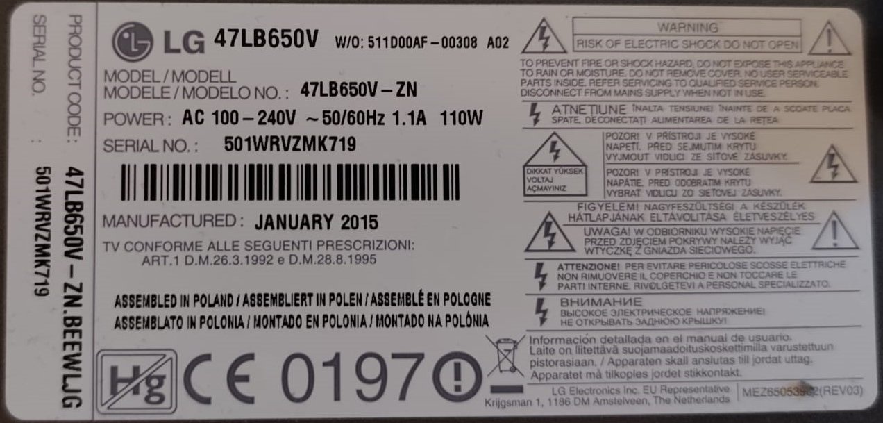 LG 47LB650V televizió kijelzője elrepedt